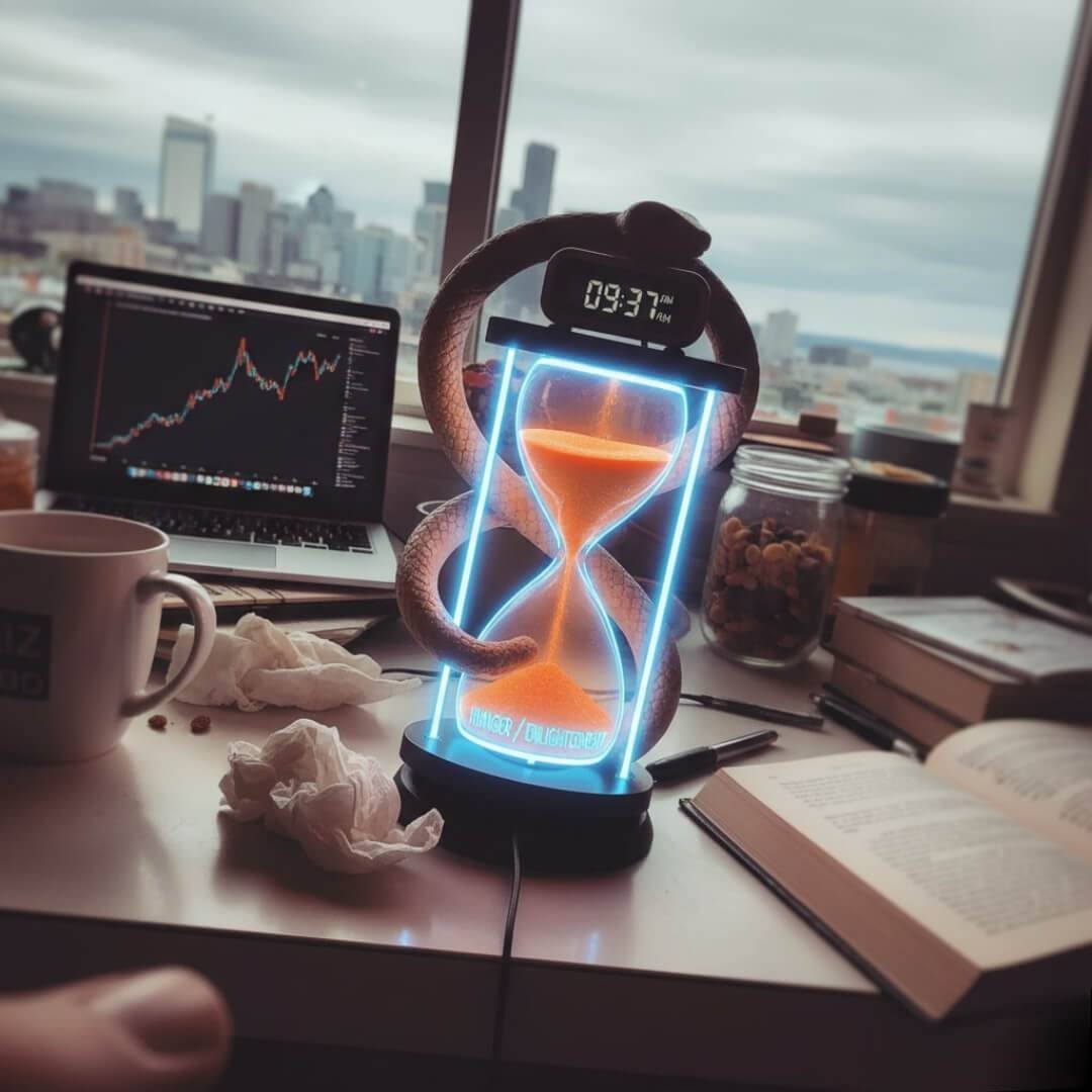 Seattle kitchen counter, fasting clock-snake hybrid.